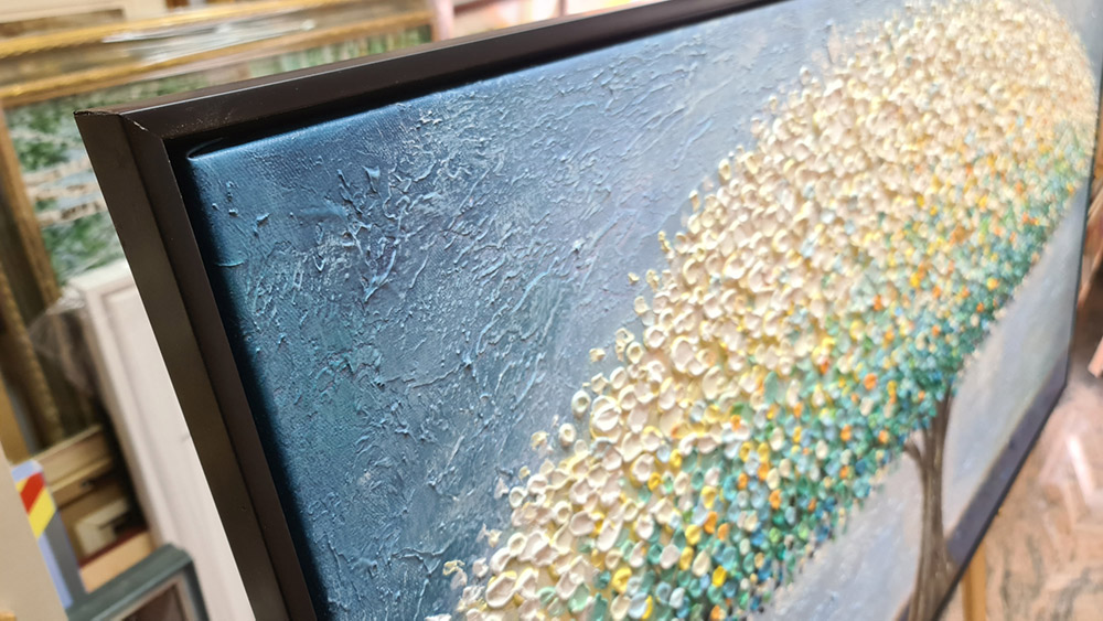 Hand painted wall art on canvas placed in different spaces to make it easier for you to decide, choose, and buy an artwork.